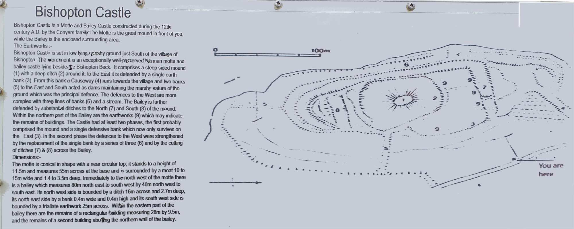 The history of Bishopton Castle and Castle Hill is quite interesting and, although the castle is long gone, the intricate earthworks remain. If you spend a little time exploring the site, you should be able to gain an understanding of the clever system that made it possible to divert water from Bishopton Beck and use it as a defence mechanism.